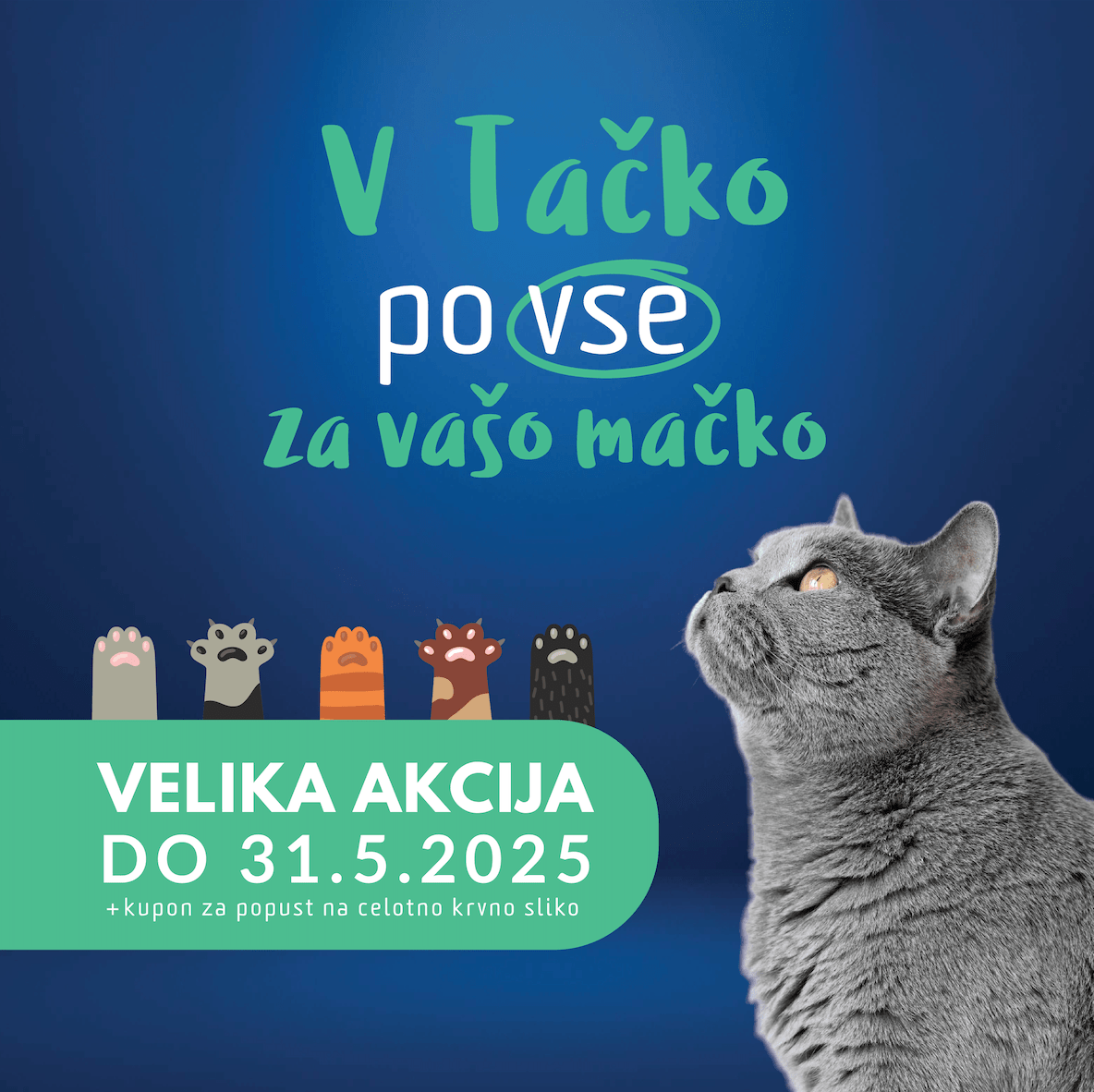 Ob nakupu kateregakoli izdelka iz mačjega asortimana v trgovinah Tačka prejmete kupon za ugodnejši pregled celotne krvne slike vaše mačke.