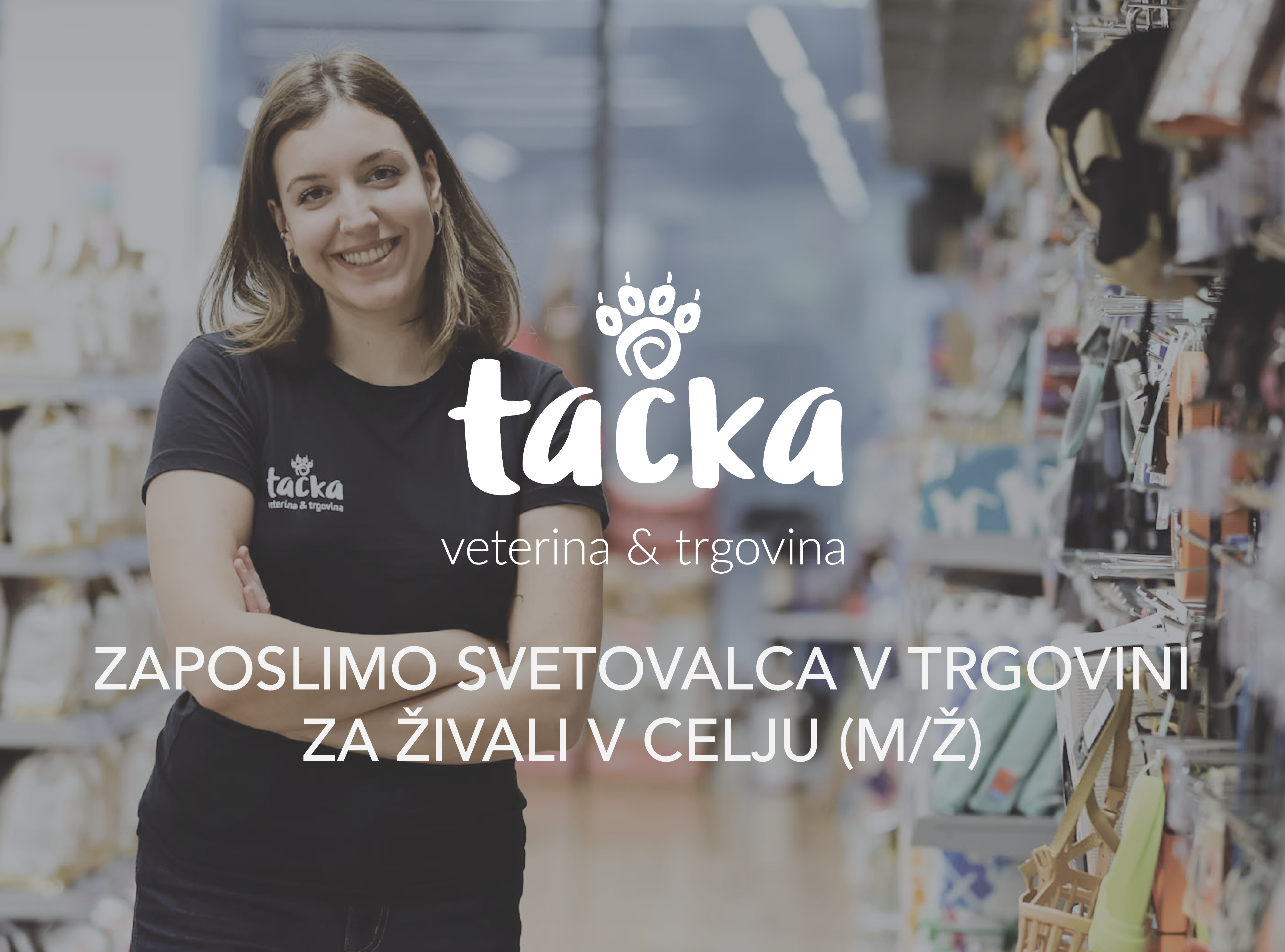 Če si želiš delati z živalmi, v prijaznem timu in v okolju Planeta Tuš, kjer lahko vsak dan pomagaš skrbnim lastnikom pri izbiri najboljše opreme in hrane za njihove ljubljenčke, te vabimo, da se prijaviš.